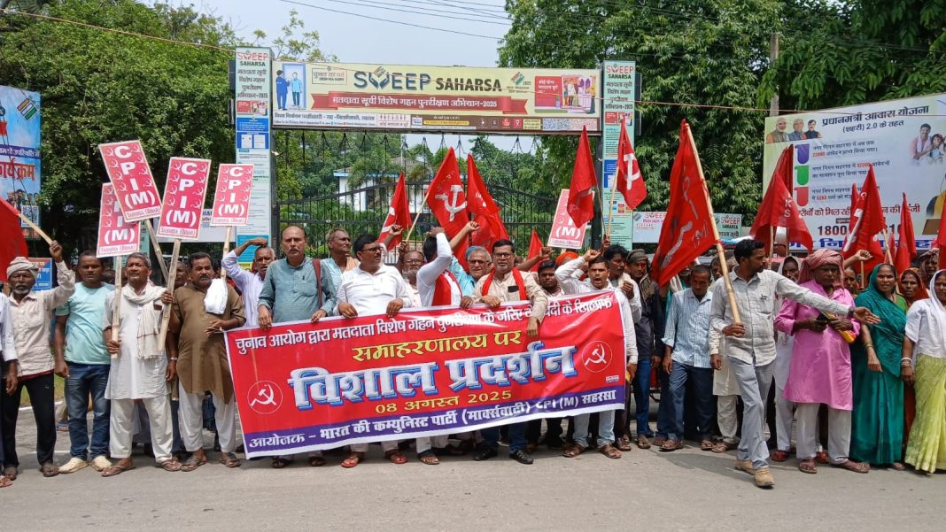 भारतक कम्युनिस्ट पार्टी (मार्क्सवादी) सीपीएम द्वारा पार्टीक राष्ट्रव्यापी आह्वान पर शुक्रदिन जिला समाहरणालय पर रोषपूर्ण प्रदर्शन कएल गेल। जिलाक विभिन्न अंचल सं आयल भारी संख्या मे प्रदर्शनकारी सुपर मार्केट मे जमा भेला, ओतय सं जुलूस निकालि कय समाहरणालय पहुंचल। एहि दौरान चुनाव आयोगक मनमानी नहि चलत, एसआईआरक बहाना सं वोटबंदी नहि चलत, गरीबाक नाम मतदाता सूची सं हटायब बंद करू आदिक गगनभेदी नारा लागल।